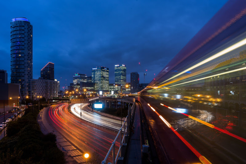 It is a high-energy image, with the lines taking the eye around the image and back again, bouncing off the buildings and looping around. The streaks created by the long exposure just enhance this feeling of speed and energy.